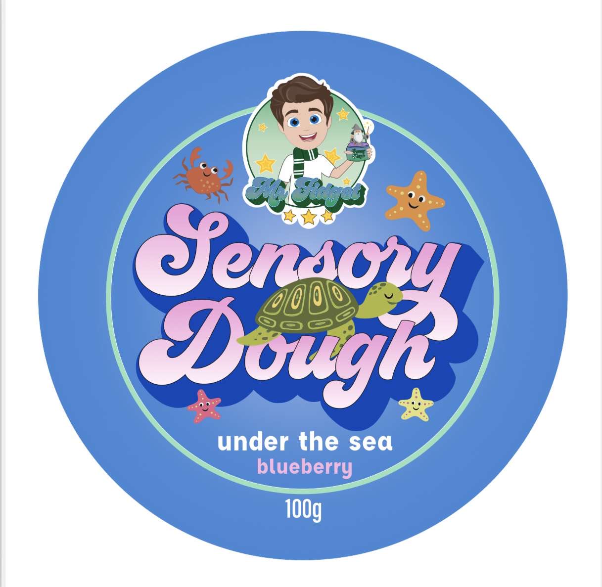 Picture a sensory dough in a soothing under-the-sea blue, evoking the tranquility of ocean depths. This dough, scented with the fresh aroma of blueberries, provides a delightful sensory experience. It features an array of miniature under-the-sea creatures—such as starfish, seahorses, and colorful fish—embedded throughout. The blue color and berry scent transport you to an underwater world, where the tactile pleasure of the dough is complemented by the charming sea creatures, making for a calming and immersive play experience.